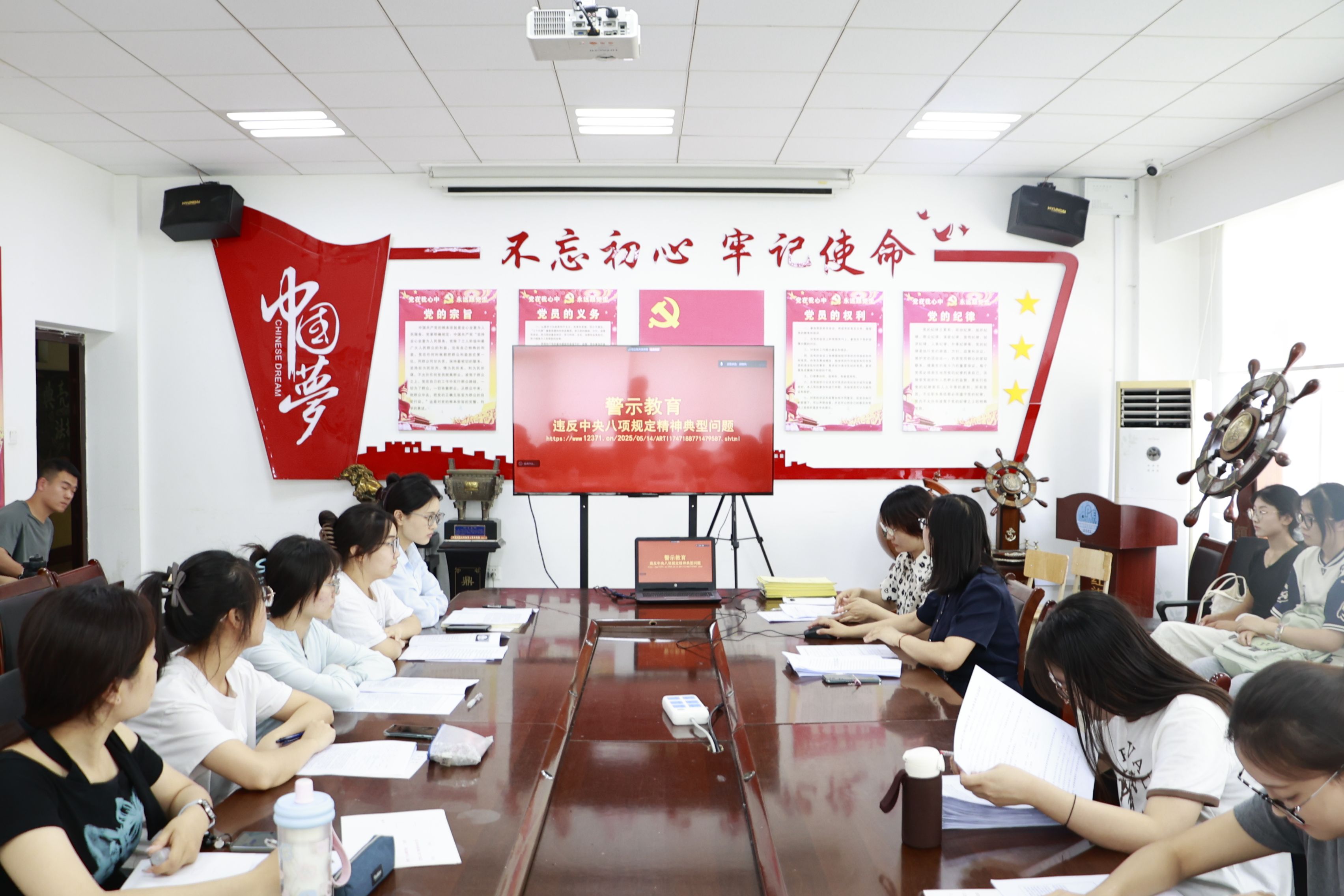 2025年6月11日下午,物理与电子工程学院学生第一党支部在党员活动室开展专题学习与警示教育活动,旨在深入学习贯彻党的十八大以来中央八项规定精神的实践成果,强化党员干部纪律意识与廉洁自律意识。支部全体党员参与此次活动。