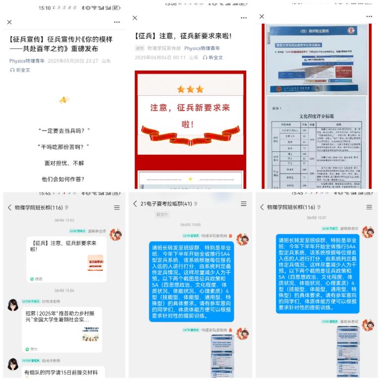 一进学院,电子屏上热血沸腾的征兵视频循环播放,走廊里醒目的征兵条幅随风飘扬,氛围感直接拉满!线上也没闲着,微信公众号、班级群定时推送 “参军指南”,从报名流程到部队生活,全流程攻略一网打尽。不少同学笑称:“现在满脑子都是‘保家卫国’,这波宣传太会拿捏了!”