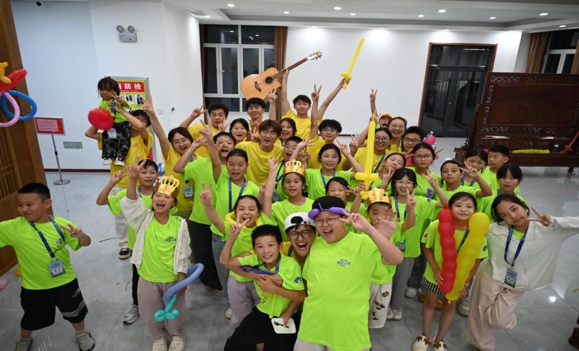 科学星火启迪智慧,专业特色赋能成长。夏令营充分发挥物理与电子学院学科优势,志愿者们打造了妙趣横生的科普课堂。《科学小达人》《浮力幻想》《知识大闯关》《DIY显微镜》等课程,点燃了乡村孩子探索物理世界的热情。“济宁学院研学之旅”,让孩子们漫步大学校园,感受学术殿堂氛围,悄然播下向往高等学府的种子。《爱在礼仪》课程细致传授传统与现代风范,提升修养;“扭扭棒创意工坊”则让想象力在指尖绽放,诞生出灵动艺术之花。趣味排球与激情“撕名牌”活动,不仅锻炼了协作能力与策略思维,更充分释放了青春活力。温馨的“集体生日会”与结营晚会,为孩子们搭建了展示自我的舞台,深化了归属感与集体荣誉。