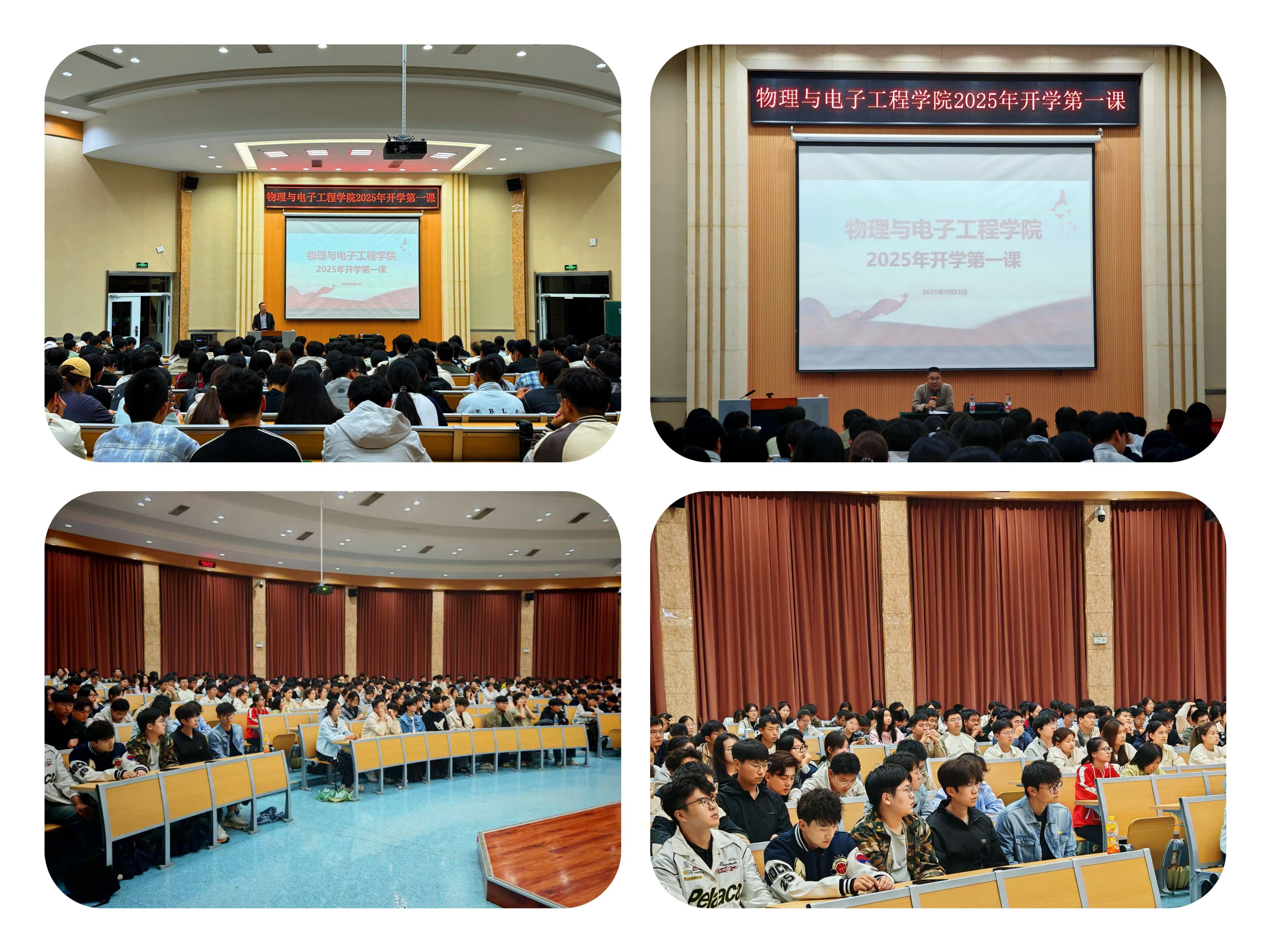 为帮助 2025级新生快速适应大学环境、明晰学业目标、规划成长路径,树立积极正向的思想观念,9月23日晚,物理与电子工程学院在8号楼报告厅开展2025年新生开学第一课。学院党委书记卫建勋、院长岳现房先后为新生授课,2025 级全体新生齐聚一堂,开启大学成长新征程。