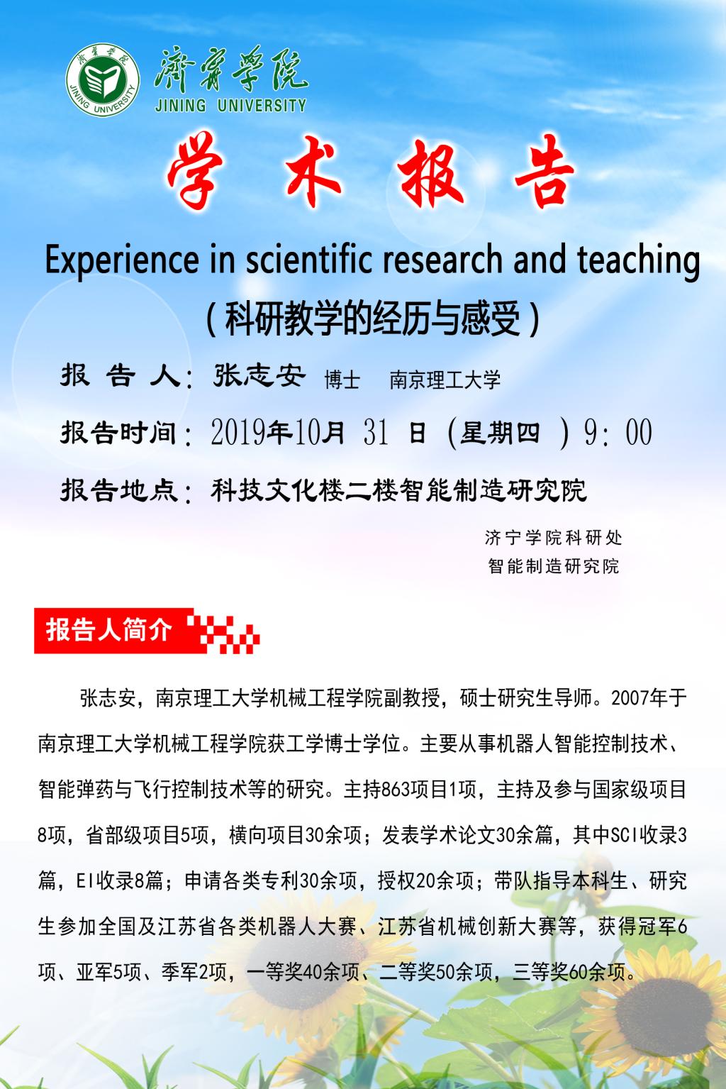 张志安博士学术报告“Experience in Scientific Research and Teaching”信息预告