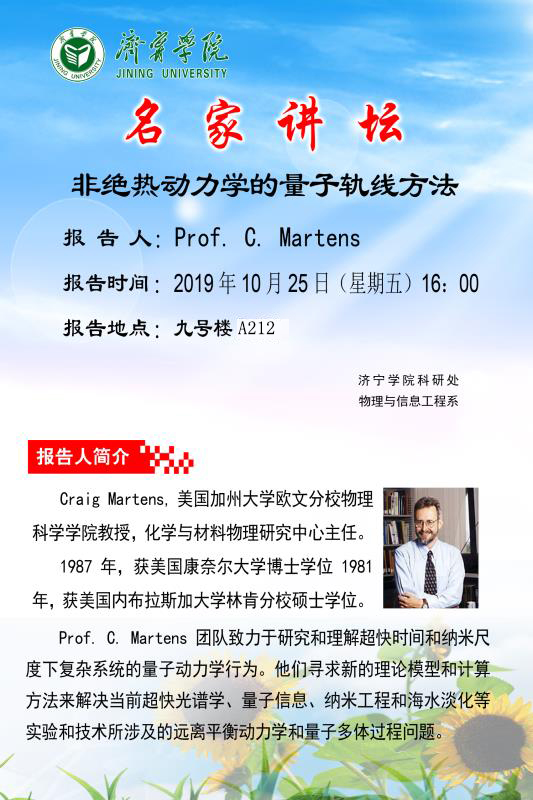 Craig Martens教授学术报告“非绝热动力学的量子轨线方法”信息预告