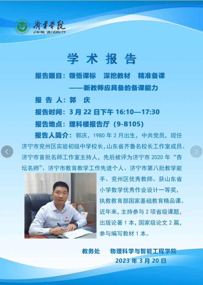 学术报告:领悟课标 深挖教材 精准备课——新教师应具备的备课能力