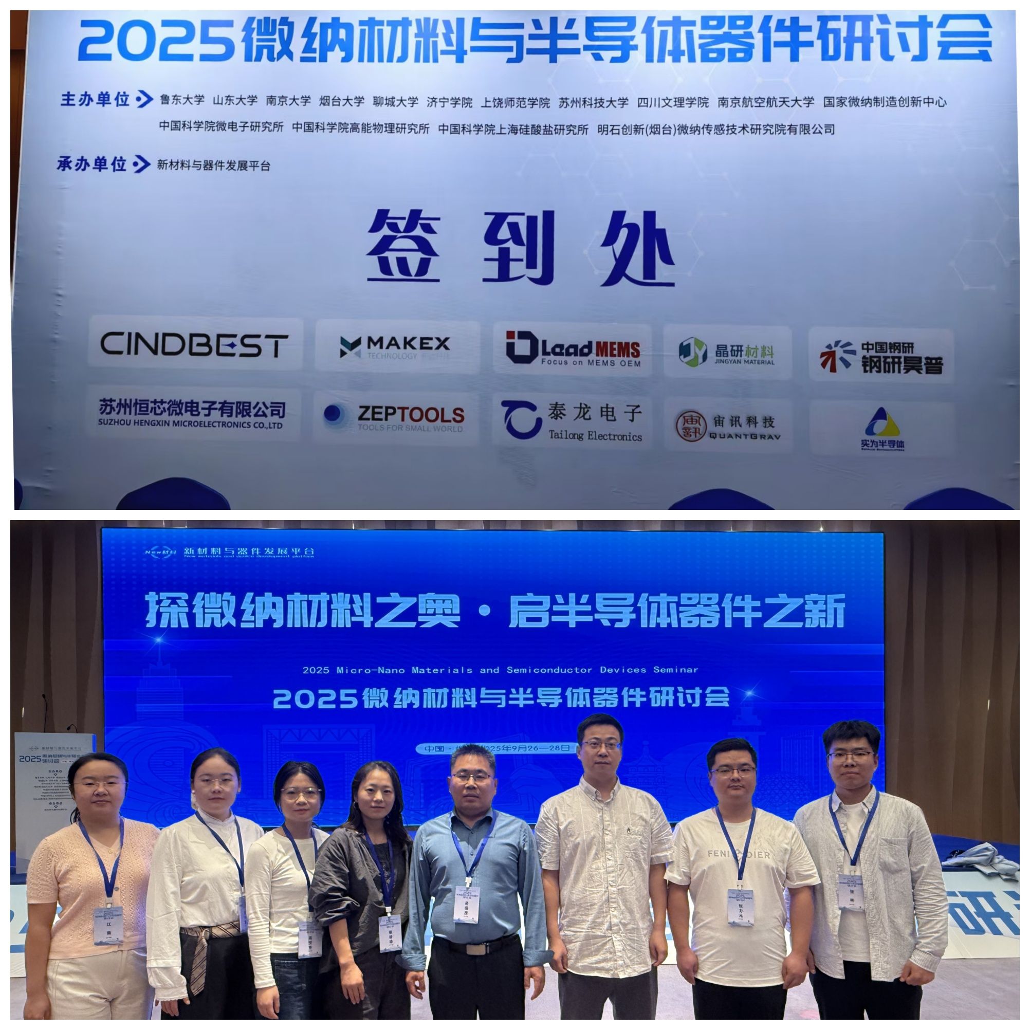 9月26日-28日,由我校和鲁东大学、山东大学、南京大学、烟台大学、聊城大学等多所高校和企业共同主办的“2025微纳材料与半导体器件研讨会”在烟台市金沙滩英迪格酒店顺利举行。物理与电子工程学院院长岳现房、院长助理孟炎等8位教师参加了会议。
