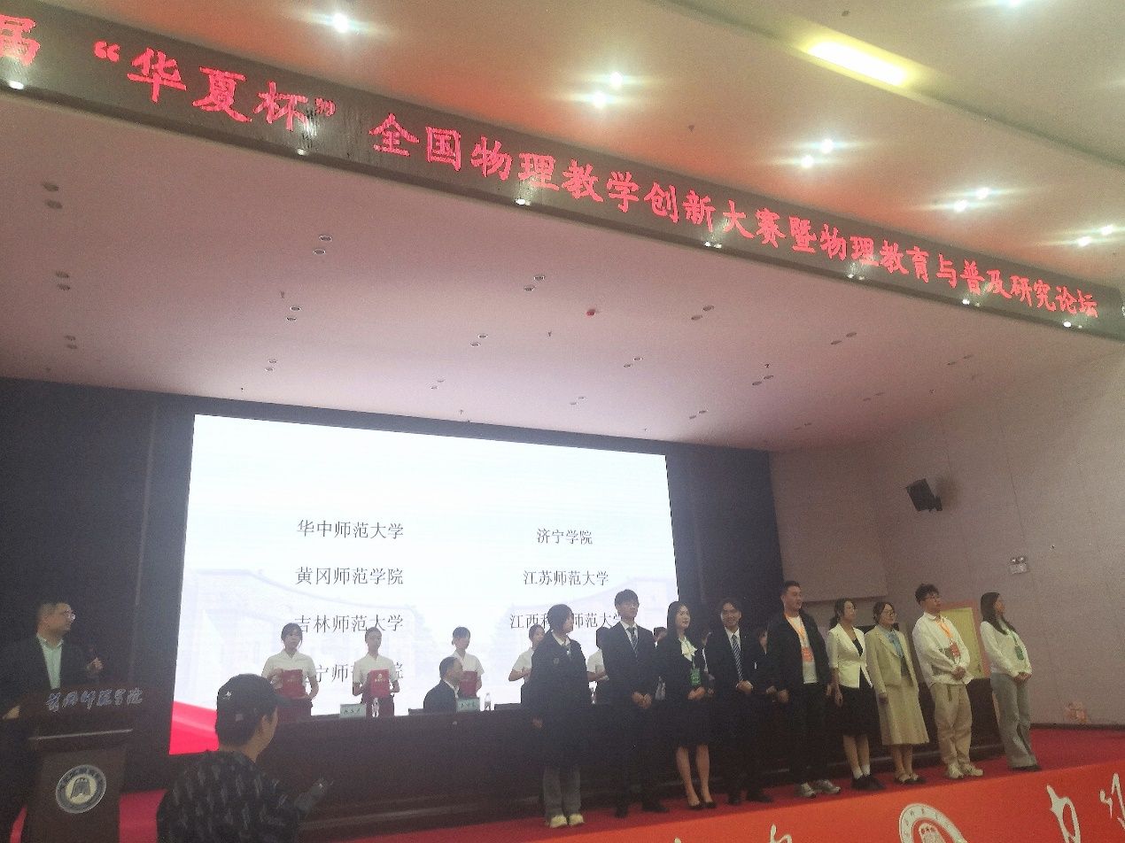11月8-10日,第九届“华夏杯”全国物理教学创新大赛暨物理教育与普及研究论坛在黄冈师范学院举行,来自华东师范大学、西南大学等84所高校的750名优秀研究生、本科生同台竞技、各展风采。K体育·(sports)官方网站共派出8位同学参赛,获教学创新一等奖1项、二等奖2项、三等奖3项,科普展演二等奖1项、三等奖1项。指导教师杨连武、赵建华受邀为教学创新组比赛的评审专家。