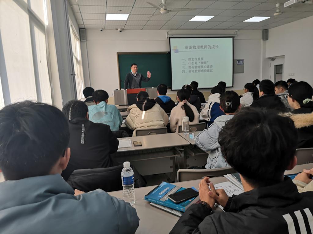 11月12日上午,在理科楼C301教室,K体育·(sports)官方网站聘请济宁市任城区教育教学研究中心教研员王峰为2019级物理学师范专业学生上课。