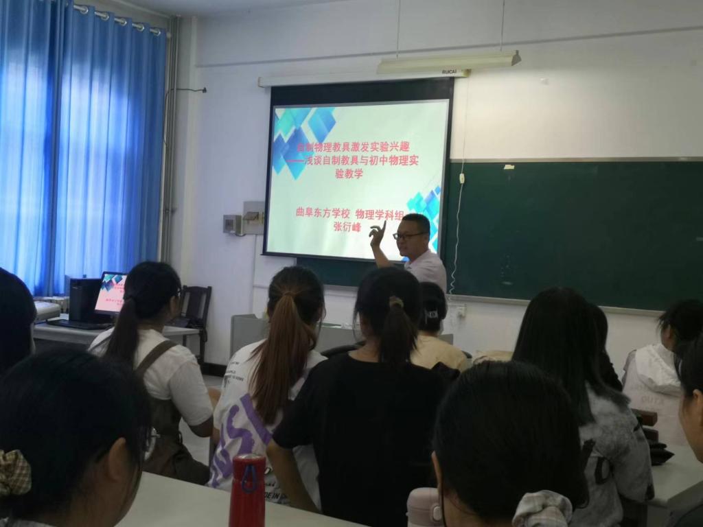 5月28日下午,K体育·(sports)官方网站邀请曲阜东方学校一级教师张衍峰、付洪在7号实验楼D204物理教法实验室举行“浅谈自制教具与初中物理实验教学”的专题报告。物理学(师范)专业学生和物理教研室部分教师参加了报告会。