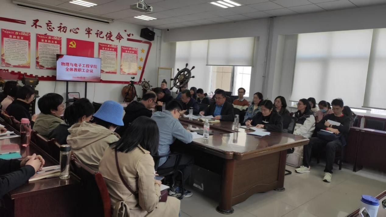 4月3日下午,物理与电子工程学院在学院会议室召开全体教师会议,会议由党委书记卫建勋主持。